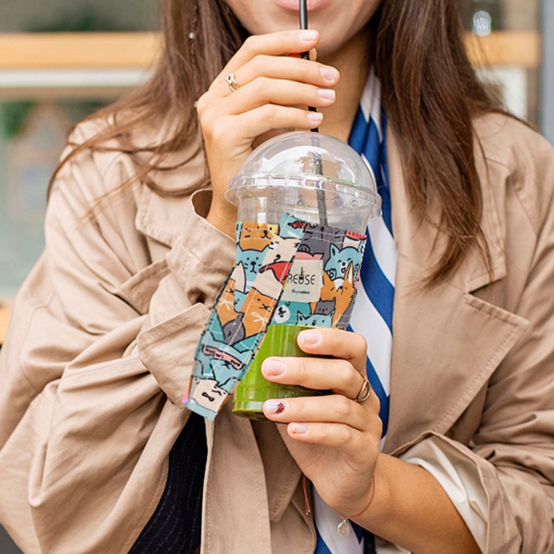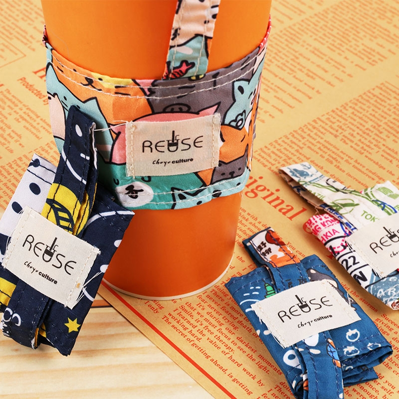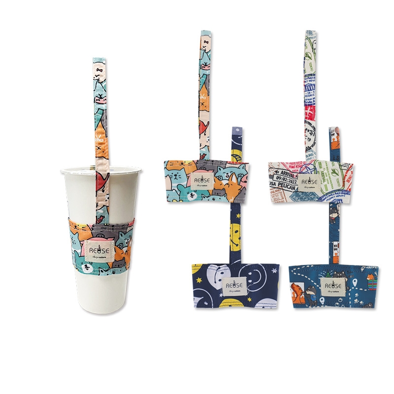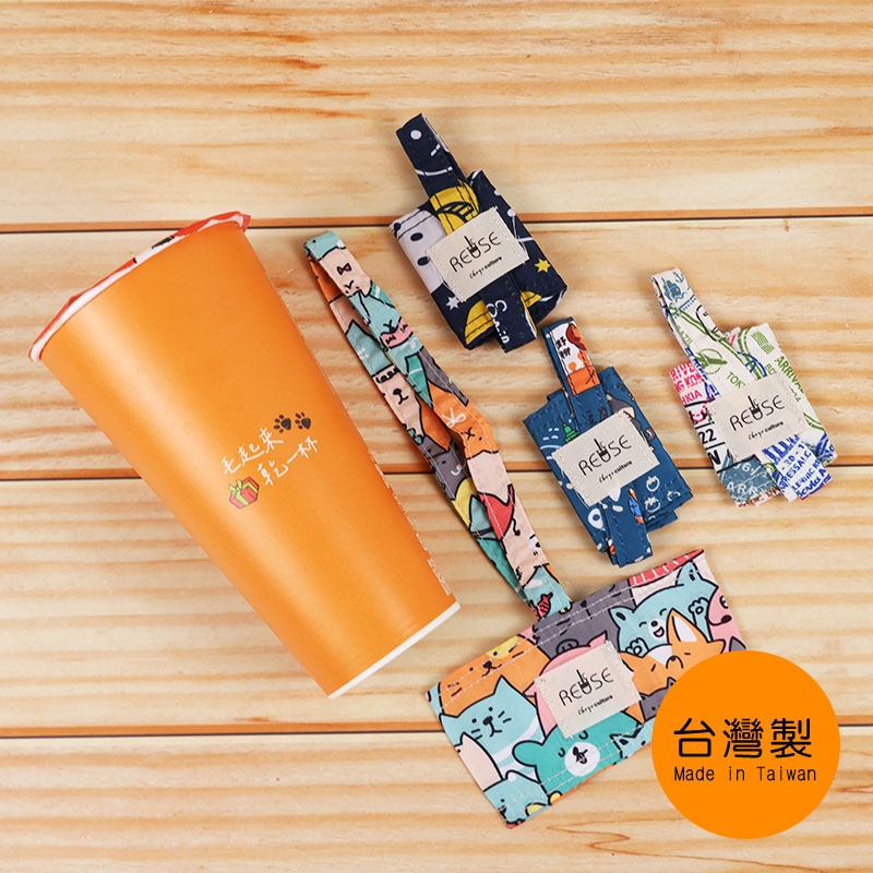 花布杯套式飲料杯提袋/飲料提袋/防潑水手搖飲提袋/手提飲料袋/減塑行動環保杯袋/奶茶杯套