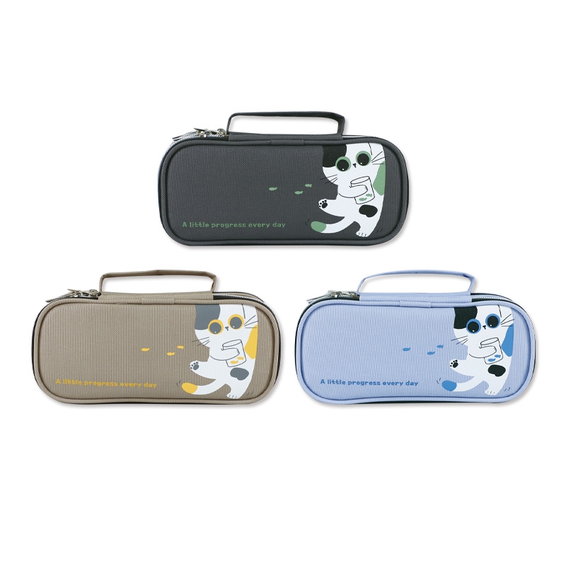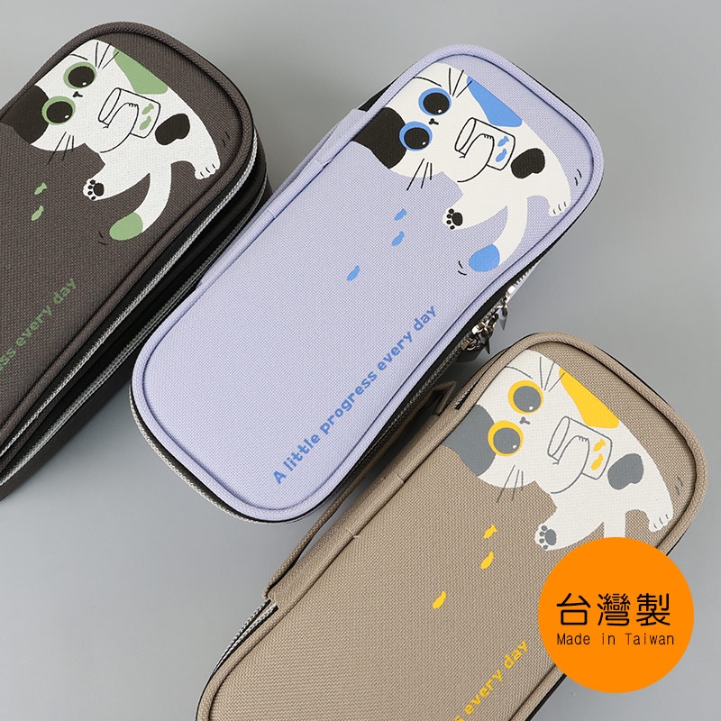 雙層上翻筆袋-甜貓/文具收納袋/手提鉛筆盒/雙向拉鍊包/雙層筆袋/大容量文具包/雙層文具盒/SGS檢驗合格