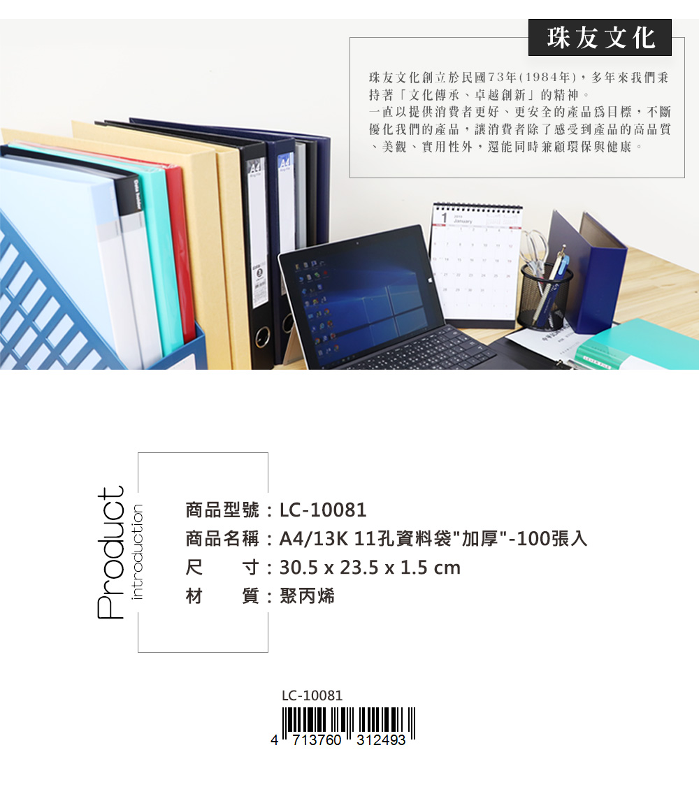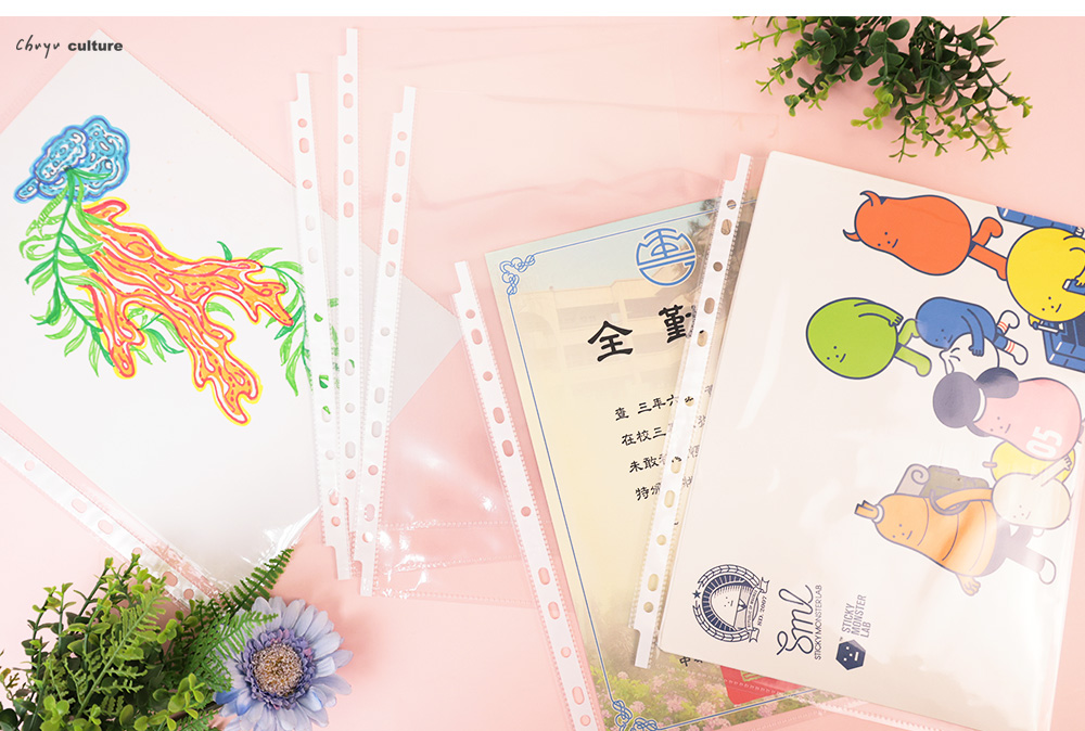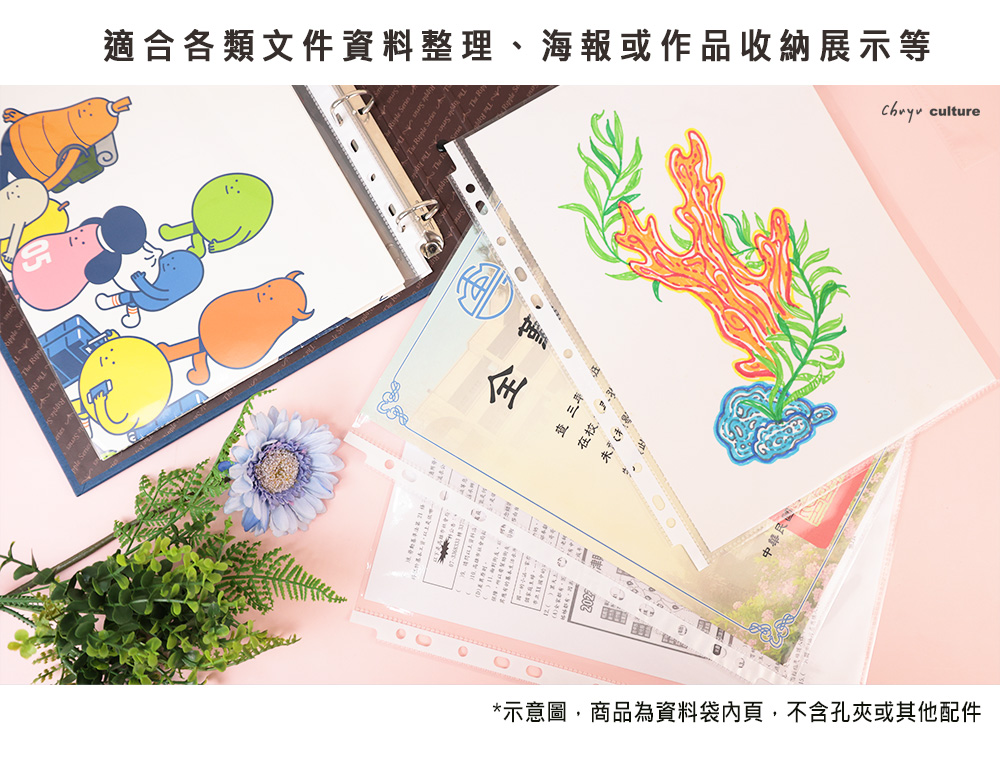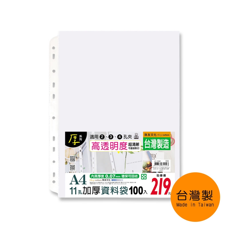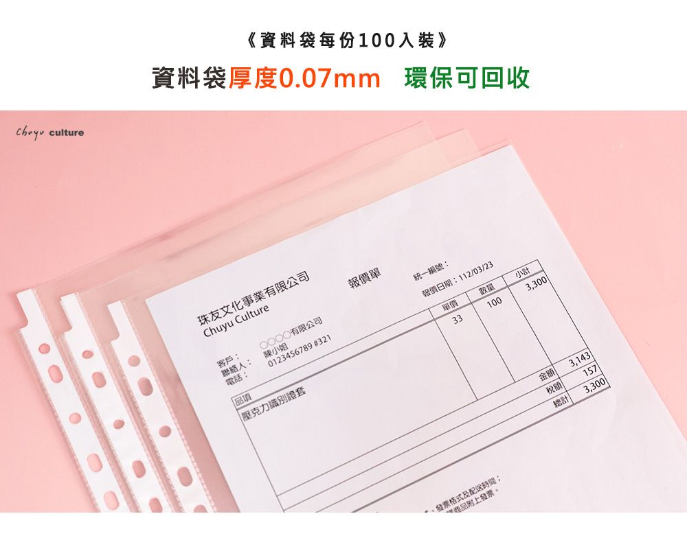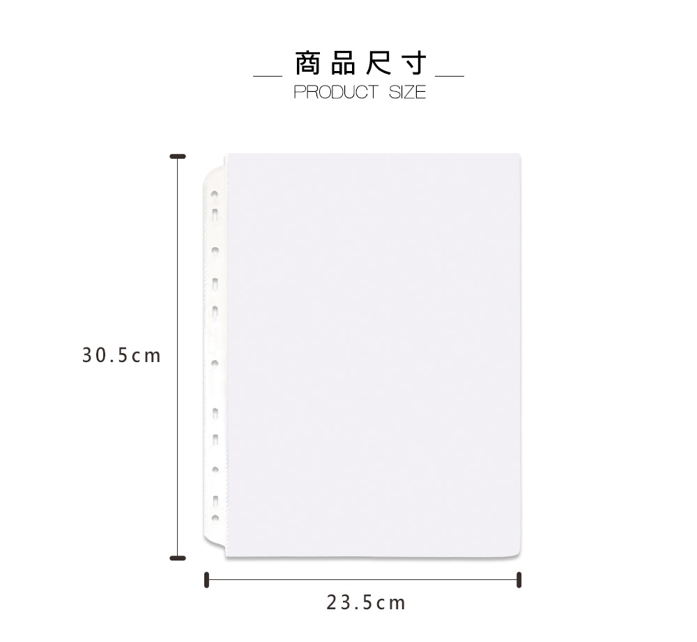 A4/13K 11孔加厚資料袋/活頁透明內袋/文件袋/辦公收納/文件收納/適用2孔夾3孔夾4孔夾-加厚0.07mm/100入
