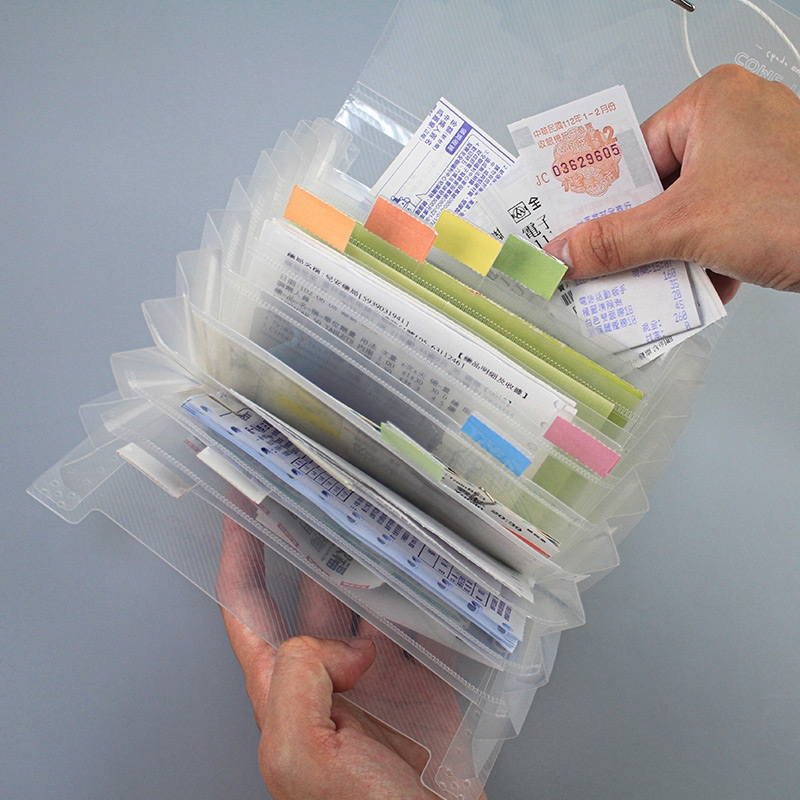 可收納發票、收據、存摺、票券、手帳貼紙等