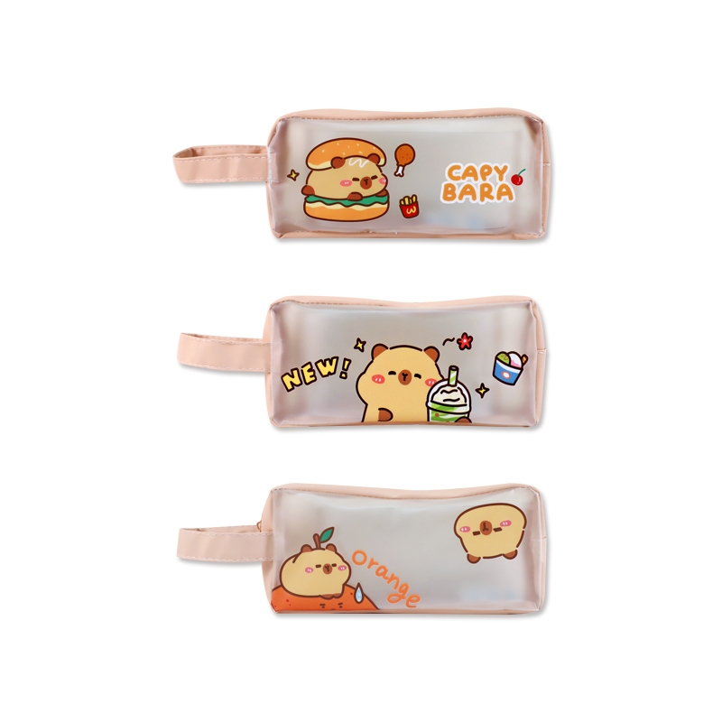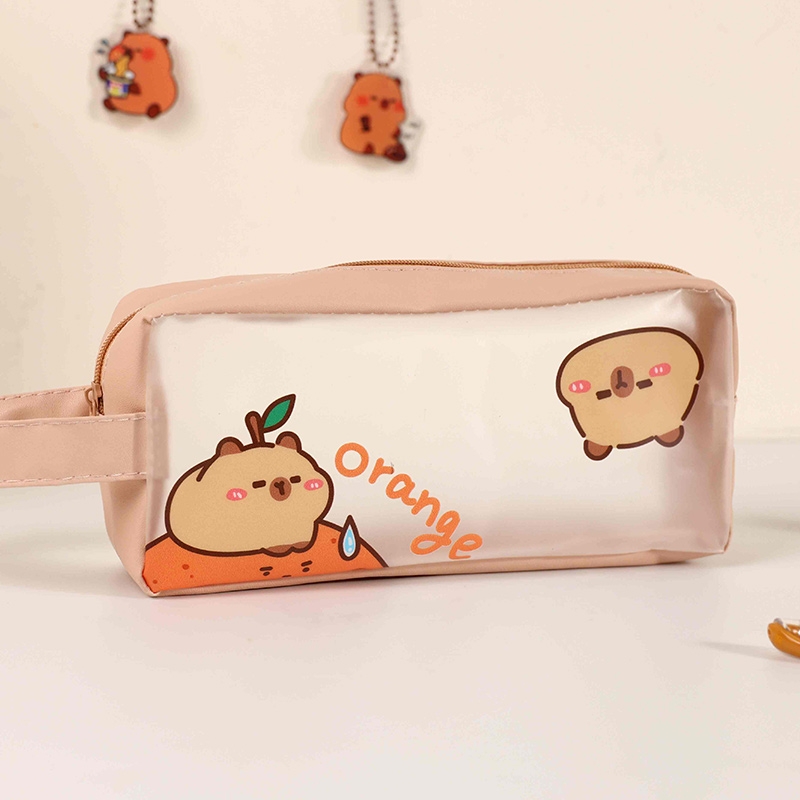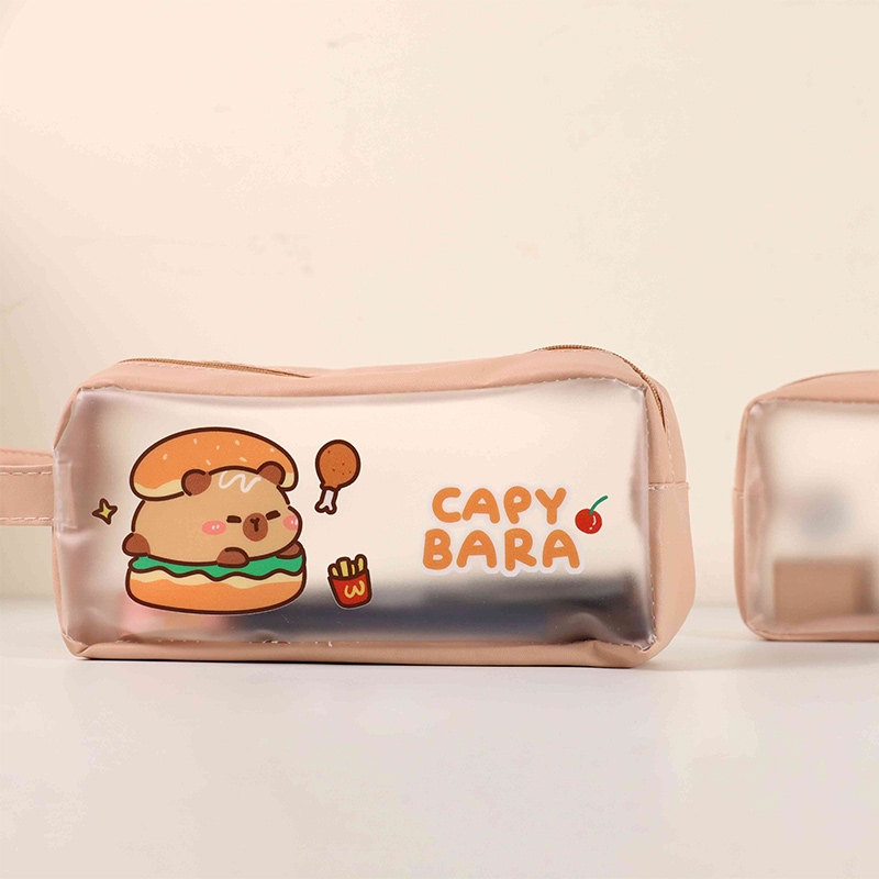 透明磨砂水豚筆袋/微透明文具袋/萬用收納包/防水拉鍊包/大開口大容量收納袋