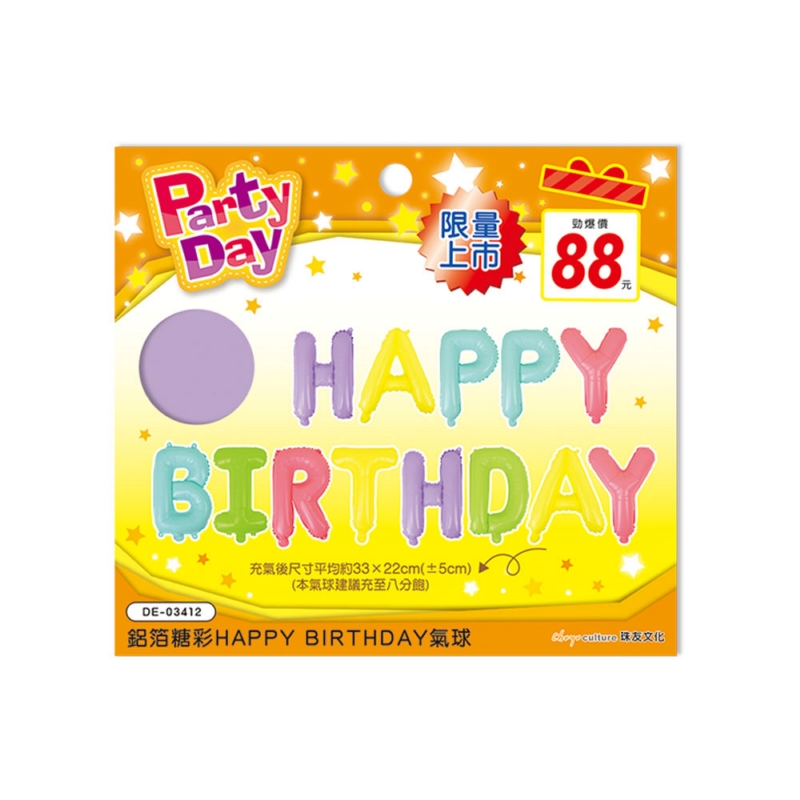 派對佈置-鋁箔糖彩HAPPY BIRTHDAY氣球/歡樂場景裝飾/生日慶生佈置/裝飾/字母氣球/生日氣球/造型氣球裝飾
