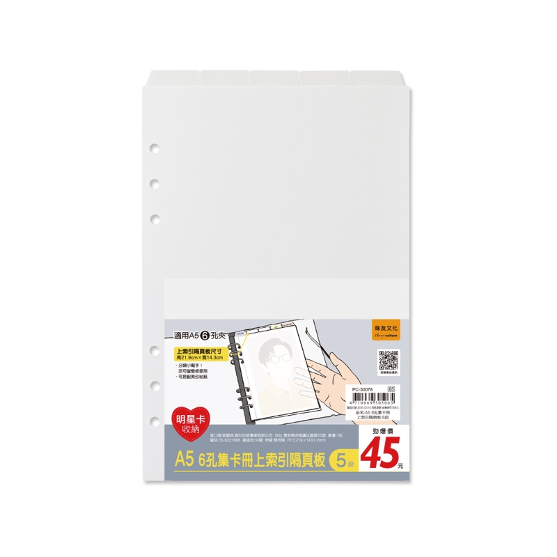 A5/25K 6孔集卡冊上索引隔頁板/明星卡冊隔板/卡冊隔板/卡冊防護/手帳墊板/透明墊板-5段